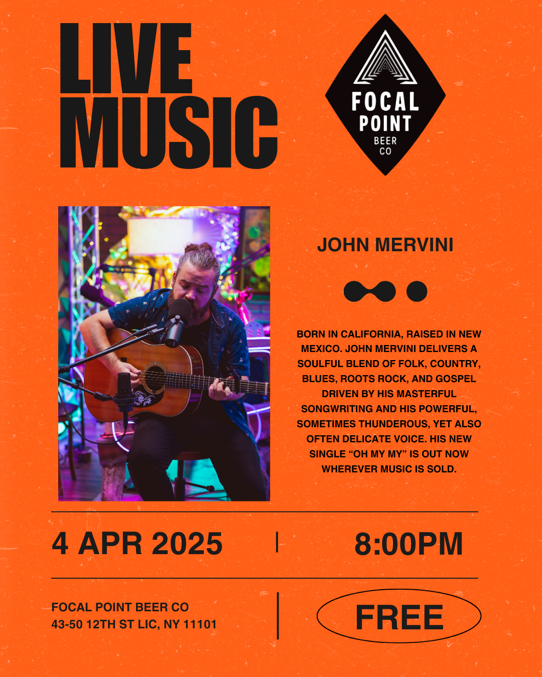 Kicking off the return of our Live Music Fridays, John Mervini is back for a solo acoustic set from 8:00-10:00pm!